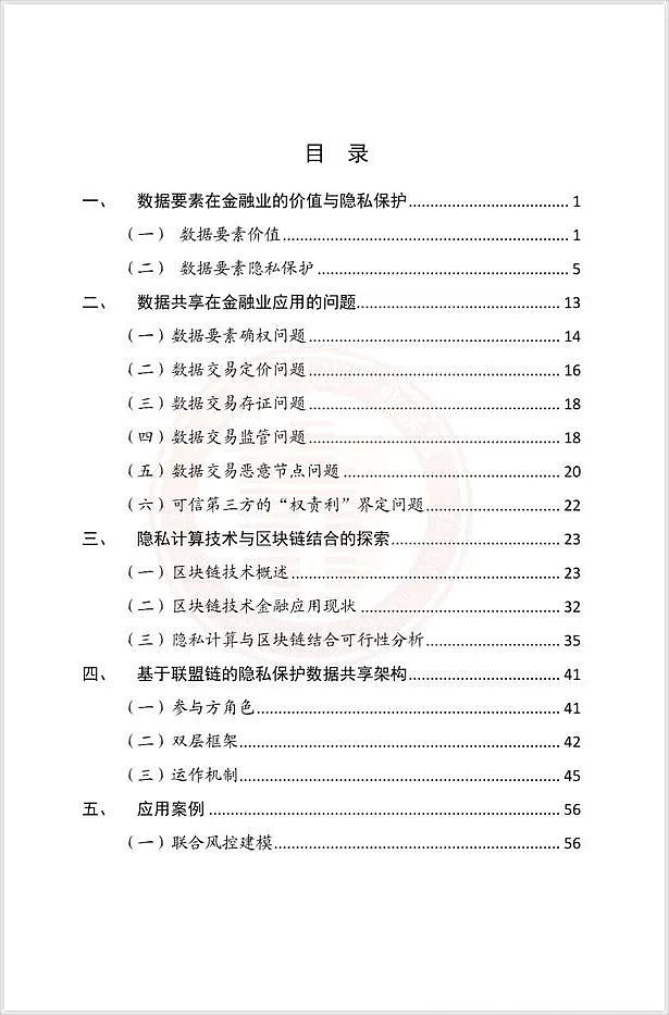 該報告從數據要素在金融業(yè)的價值與隱私保護、數據共享在金融業(yè)應用的問題、隱私計算技術與區(qū)塊鏈結合的探索、基于聯盟鏈的隱私保護數據共享架構、應用案例以及總結展望等方面進行了全面的介紹,為聯盟鏈技術在金融行業(yè)隱私保護方面的應用提供參考。