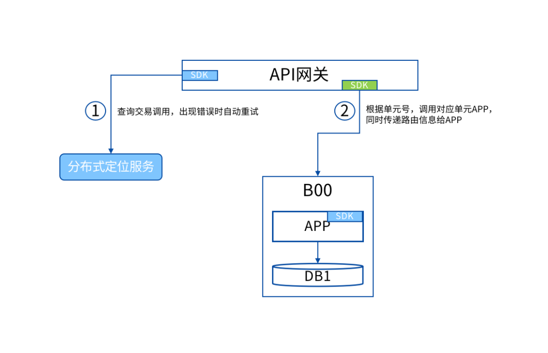 在普通場景下,網關收到交易后從分布式定位服務中查詢到該筆交易所屬的單元,然后再由服務調用組件將交易轉發到具體的單元上。