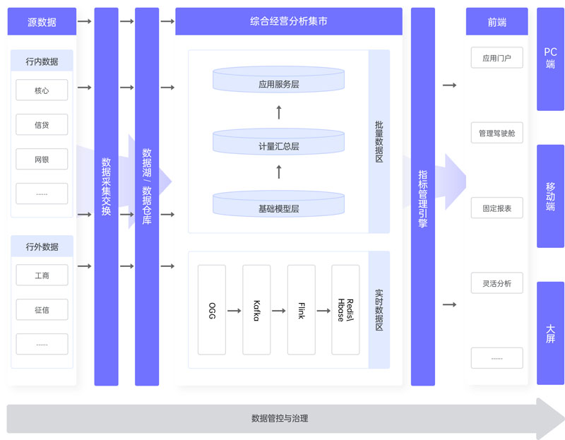采用流批融合架構,實時數據流處理確保關鍵指標能夠秒級更新,滿足高時效需求,批量處理利用歷史數據增強分析能力,充分發 揮數據的價值