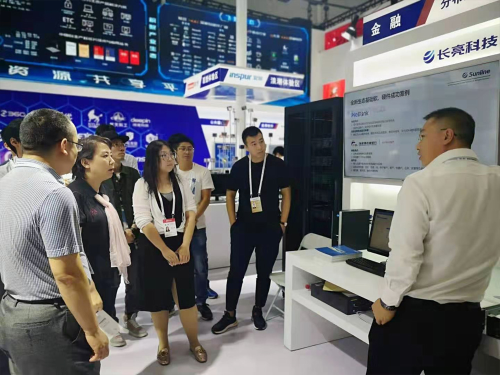 中國電子信息產業發展研究院院長盧山、副院長黃子河等領導均到長亮科技展位考察調研,在詳細了解了長亮科技在微眾銀行、張家港農商銀行等銀行核心業務系統取得的創新突破后,領導們紛紛對長亮科技取得的成績表示肯定。