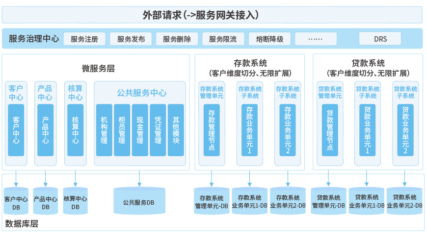 長亮科技結(jié)合自身在銀行核心系統(tǒng)領(lǐng)域技術(shù)及業(yè)務(wù)的洞見,融合領(lǐng)先的業(yè)務(wù)和技術(shù)架構(gòu),推出全國首個(gè)“微服務(wù)+單元化”架構(gòu)的新一代分布式銀行核心系統(tǒng)SunLtts V8(簡稱V8),旨在幫助銀行解決集中式的性能瓶頸,提高核心系統(tǒng)的高可用性和動態(tài)擴(kuò)容能力,以靈活的產(chǎn)品、定價(jià)及營銷搶占市場先機(jī),快速實(shí)現(xiàn)數(shù)字化轉(zhuǎn)型。