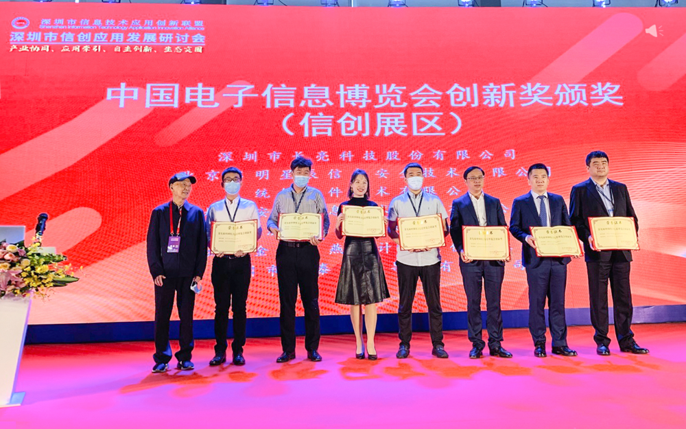 2021年4月9日,長亮科技作為金融信創代表企業出席第九屆中國電子信息博覽會-深圳市信創應用發展研討會,其分布式核心系統憑借著自主創新技術及信創應用的突出成績榮獲中國電子信息博覽會創新獎。